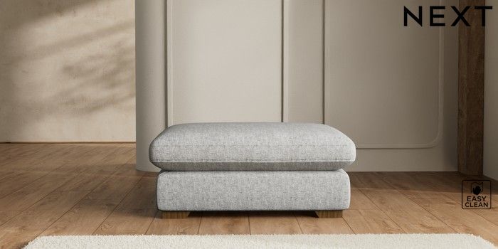 7.2.10 N Premium The Snuggle Grand Extra Large Footstool Chunky Boucle Easy Clean Light Grey Square Angle - Mid | Made Click here to use our website with more accessibility support, for example screen readers