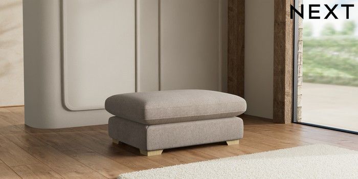 7.2.10 N Premium The Snuggle Grand Extra Large Footstool Chunky Chenille Light Dove Square Angle - Light | Made Click here to use our website with more accessibility support, for example screen readers
