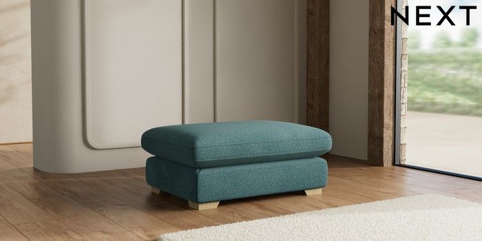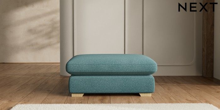 7.2.10 N Premium The Snuggle Grand Extra Large Footstool Chunky Chenille Mid Teal Green Square Angle - Light | Made Click here to use our website with more accessibility support, for example screen readers
