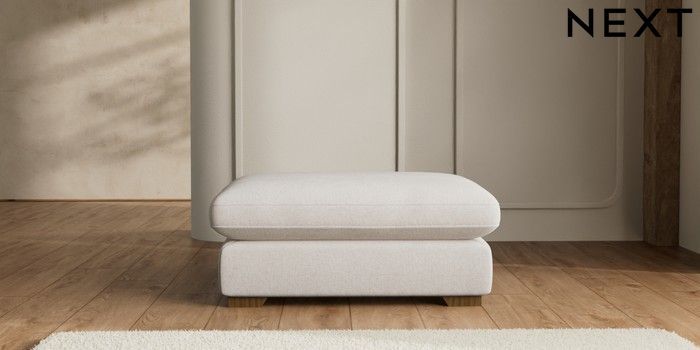 7.2.10 N Premium The Snuggle Grand Extra Large Footstool Chunky Chenille Oyster Square Angle - Mid | Made Click here to use our website with more accessibility support, for example screen readers