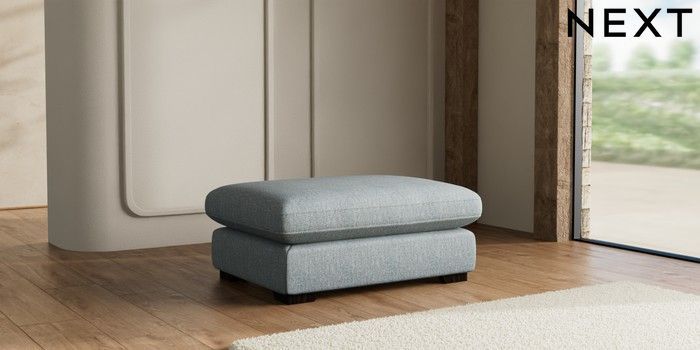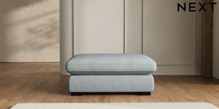 7.2.10 N Premium The Snuggle Grand Extra Large Footstool Chunky Weave Mid Blue Square Angle - Dark | Made Click here to use our website with more accessibility support, for example screen readers