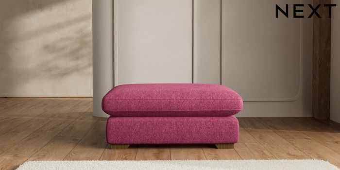 7.2.10 N Premium The Snuggle Grand Extra Large Footstool Cotswold Chenille Dark Raspberry Pink Square Angle - Mid | Made Click here to use our website with more accessibility support, for example screen readers