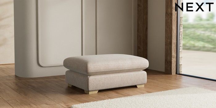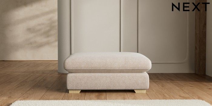 7.2.10 N Premium The Snuggle Grand Extra Large Footstool Cotswold Chenille Light Natural Square Angle - Light | Made Click here to use our website with more accessibility support, for example screen readers