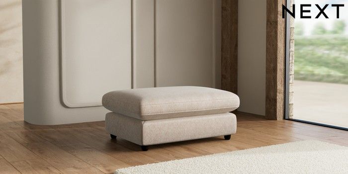 7.2.10 N Premium The Snuggle Grand Extra Large Footstool Cotswold Chenille Light Natural Wooden Glide - Dark | Made Click here to use our website with more accessibility support, for example screen readers