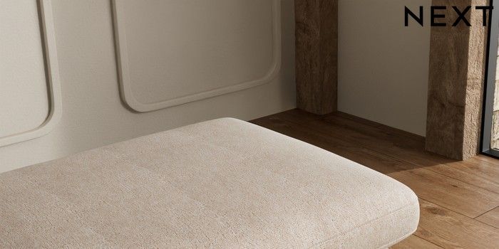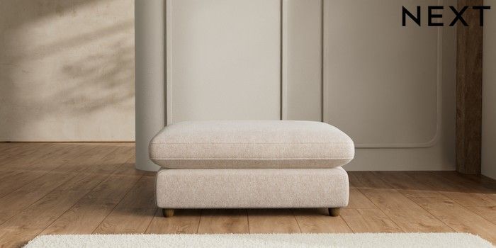 7.2.10 N Premium The Snuggle Grand Extra Large Footstool Cotswold Chenille Light Natural Wooden Glide - Mid | Made Click here to use our website with more accessibility support, for example screen readers