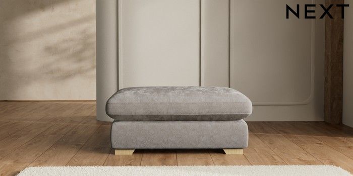 7.2.10 N Premium The Snuggle Grand Extra Large Footstool Distressed Velour French Grey Square Angle - Light | Made Click here to use our website with more accessibility support, for example screen readers