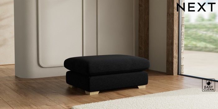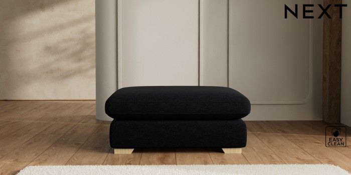 7.2.10 N Premium The Snuggle Grand Extra Large Footstool Fine Chenille Easy Clean Black Square Angle - Light | Made Click here to use our website with more accessibility support, for example screen readers