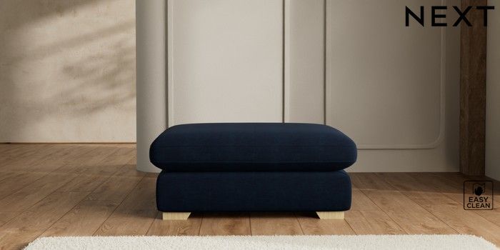 7.2.10 N Premium The Snuggle Grand Extra Large Footstool Fine Chenille Easy Clean Dark Navy Blue Square Angle - Light | Made Click here to use our website with more accessibility support, for example screen readers