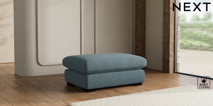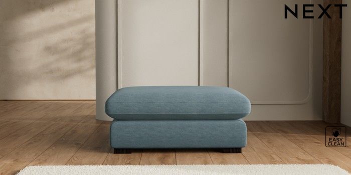 7.2.10 N Premium The Snuggle Grand Extra Large Footstool Fine Chenille Easy Clean Mid Blue Square Angle - Dark | Made Click here to use our website with more accessibility support, for example screen readers