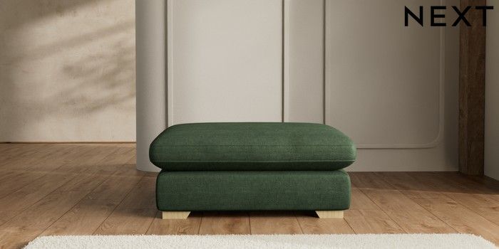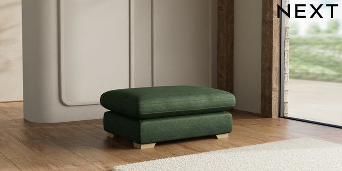 7.2.10 N Premium The Snuggle Grand Extra Large Footstool Luxe Chenille Dark Green Square Angle - Light | Made Click here to use our website with more accessibility support, for example screen readers