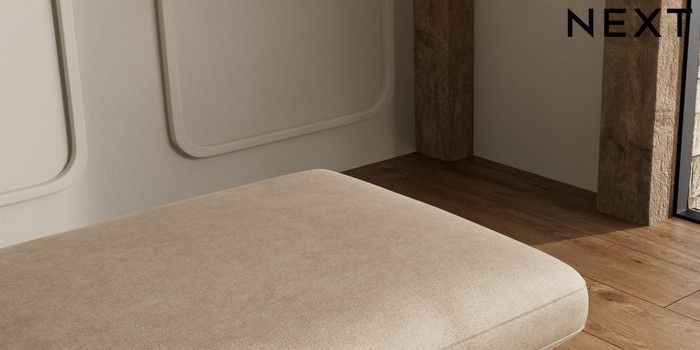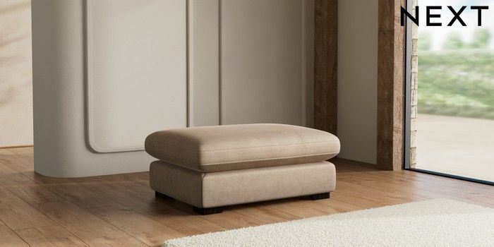 7.2.10 N Premium The Snuggle Grand Extra Large Footstool Luxe Chenille Mid Camel Beige Square Angle - Dark | Made Click here to use our website with more accessibility support, for example screen readers