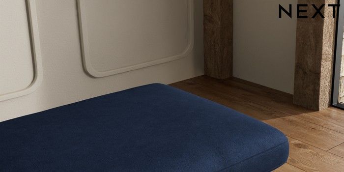 7.2.10 N Premium The Snuggle Grand Extra Large Footstool Luxe Chenille Navy Blue Square Angle - Mid | Made Click here to use our website with more accessibility support, for example screen readers
