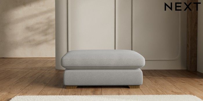 7.2.10 N Premium The Snuggle Grand Extra Large Footstool Natural Mix Light Grey Square Angle - Mid | Made Click here to use our website with more accessibility support, for example screen readers