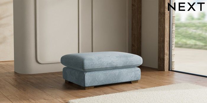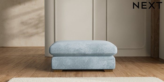 7.2.10 N Premium The Snuggle Grand Extra Large Footstool Plush Chenille Light Blue Square Angle - Mid | Made Click here to use our website with more accessibility support, for example screen readers