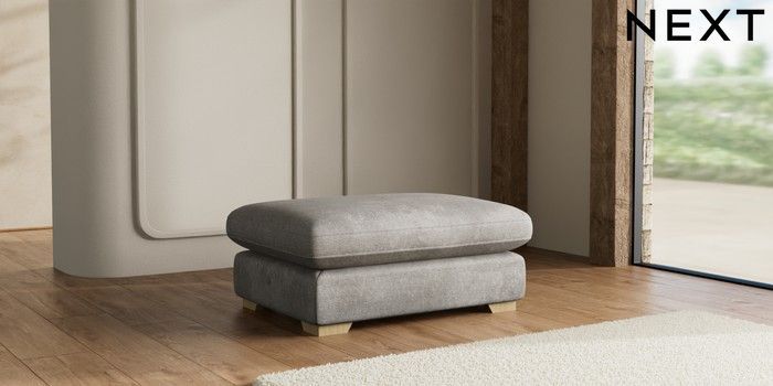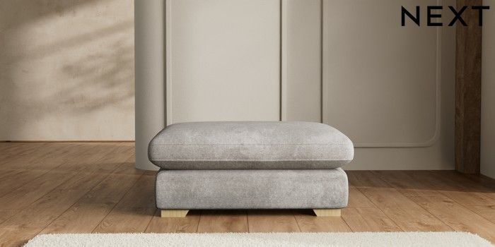 7.2.10 N Premium The Snuggle Grand Extra Large Footstool Plush Chenille Light Grey Square Angle - Light | Made Click here to use our website with more accessibility support, for example screen readers