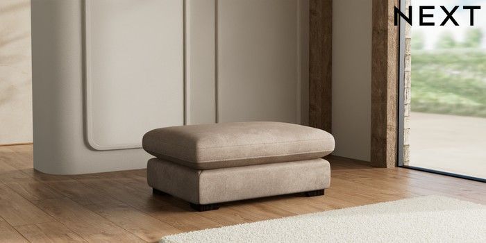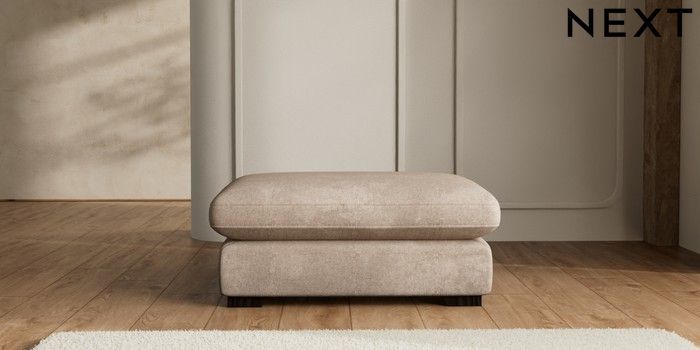 7.2.10 N Premium The Snuggle Grand Extra Large Footstool Plush Chenille Mid Natural Square Angle - Dark | Made Click here to use our website with more accessibility support, for example screen readers