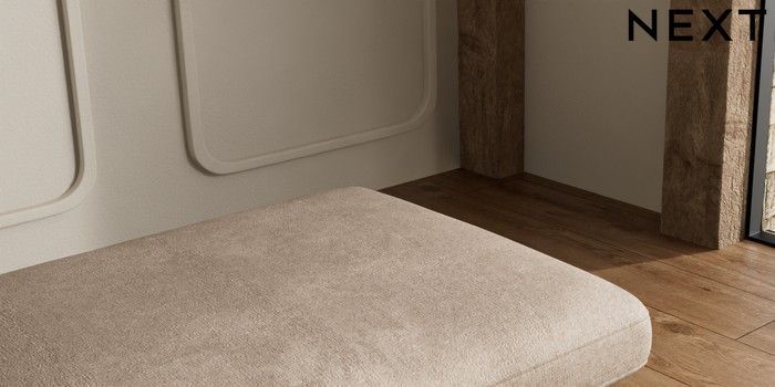 7.2.10 N Premium The Snuggle Grand Extra Large Footstool Plush Chenille Mid Natural Square Angle - Light | Made Click here to use our website with more accessibility support, for example screen readers