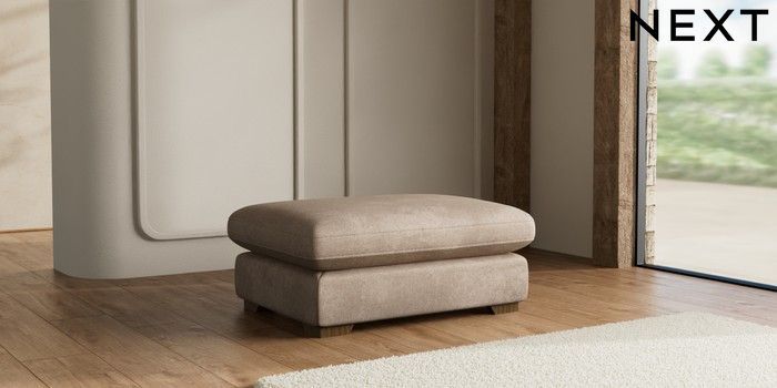 7.2.10 N Premium The Snuggle Grand Extra Large Footstool Plush Chenille Mid Natural Square Angle - Mid | Made Click here to use our website with more accessibility support, for example screen readers