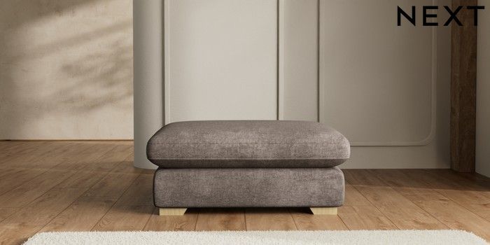 7.2.10 N Premium The Snuggle Grand Extra Large Footstool Plush Chenille Mink Brown Square Angle - Light | Made Click here to use our website with more accessibility support, for example screen readers