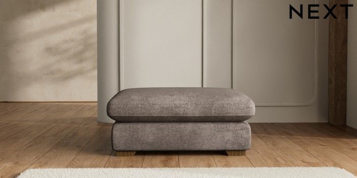 7.2.10 N Premium The Snuggle Grand Extra Large Footstool Plush Chenille Mink Brown Square Angle - Mid | Made Click here to use our website with more accessibility support, for example screen readers