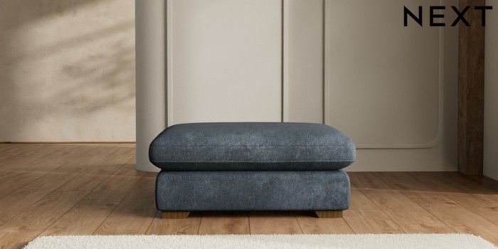 7.2.10 N Premium The Snuggle Grand Extra Large Footstool Plush Chenille Slate Blue Square Angle - Mid | Made Click here to use our website with more accessibility support, for example screen readers