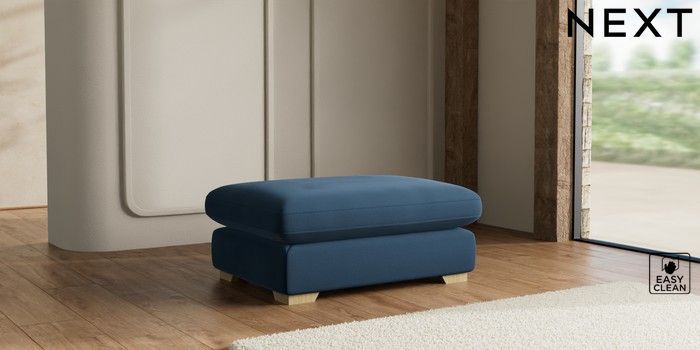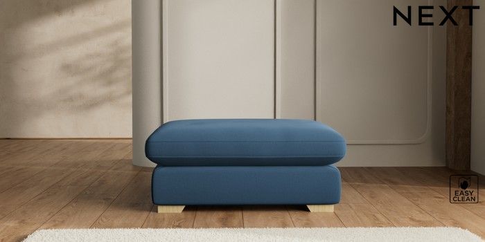 7.2.10 N Premium The Snuggle Grand Extra Large Footstool Plush Velvet Easy Clean Airforce Blue Square Angle - Light | Made Click here to use our website with more accessibility support, for example screen readers