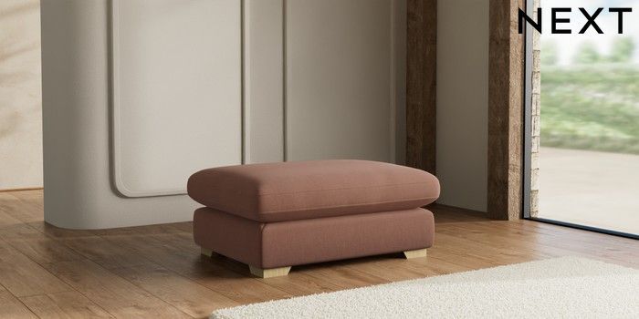 7.2.10 N Premium The Snuggle Grand Extra Large Footstool Relaxed Linen Look Light Rust Brown Square Angle - Light | Made Click here to use our website with more accessibility support, for example screen readers
