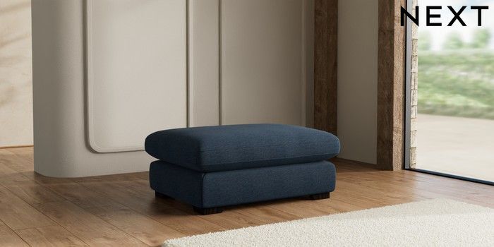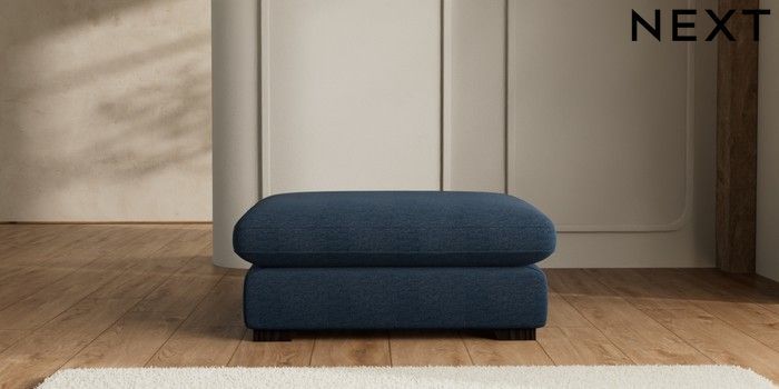 7.2.10 N Premium The Snuggle Grand Extra Large Footstool Ripple Chenille Dark Blue Square Angle - Dark | Made Click here to use our website with more accessibility support, for example screen readers