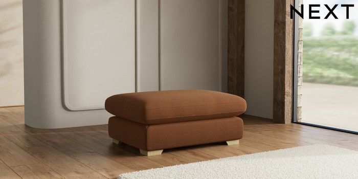 7.2.10 N Premium The Snuggle Grand Extra Large Footstool Ripple Chenille Mid Rust Brown Square Angle - Light | Made Click here to use our website with more accessibility support, for example screen readers