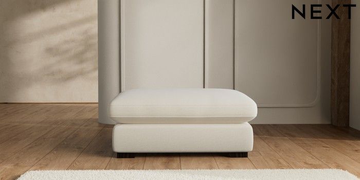 7.2.10 N Premium The Snuggle Grand Extra Large Footstool Ripple Chenille Oyster Square Angle - Dark | Made Click here to use our website with more accessibility support, for example screen readers