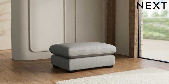 7.2.10 N Premium The Snuggle Grand Extra Large Footstool Tweedy Chenille Mid Grey Square Angle - Dark | Made Click here to use our website with more accessibility support, for example screen readers