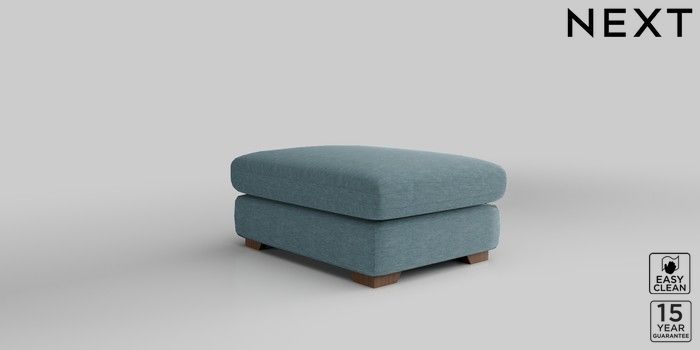7.2.10 N Premium The Snuggle Grand Footstool Fine Chenille Easy Clean Mid Blue Square Angle - Mid | Made Click here to use our website with more accessibility support, for example screen readers