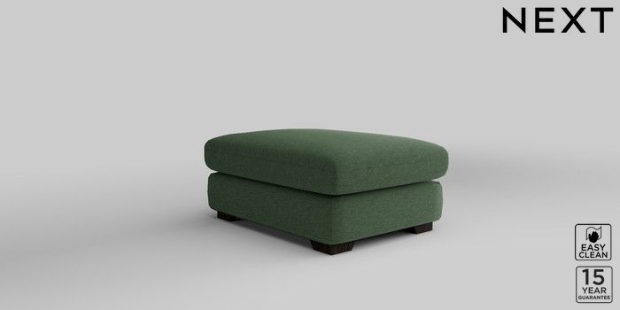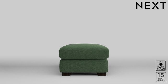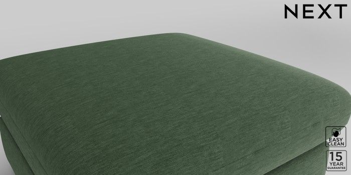 7.2.10 N Premium The Snuggle Grand Footstool Fine Chenille Easy Clean Mid Khaki Green Square Angle - Dark | Made Click here to use our website with more accessibility support, for example screen readers