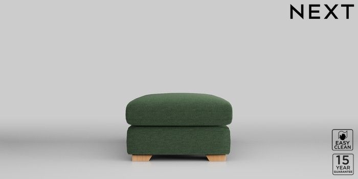 7.2.10 N Premium The Snuggle Grand Footstool Fine Chenille Easy Clean Mid Khaki Green Square Angle - Light | Made Click here to use our website with more accessibility support, for example screen readers