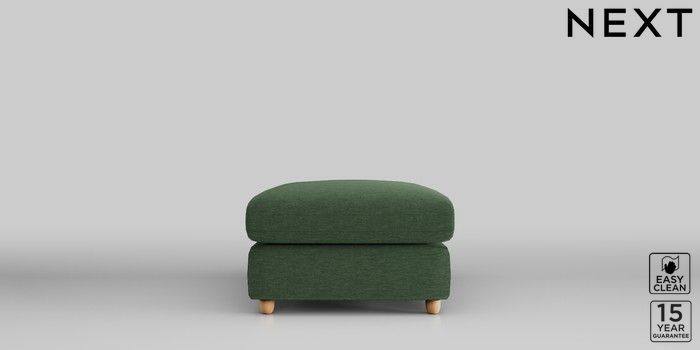 7.2.10 N Premium The Snuggle Grand Footstool Fine Chenille Easy Clean Mid Khaki Green Wooden Glide - Light | Made Click here to use our website with more accessibility support, for example screen readers