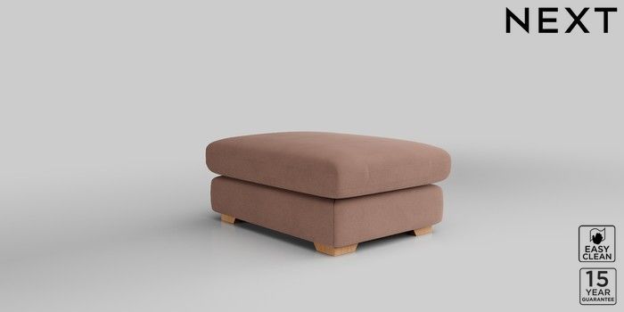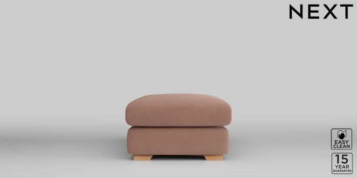 7.2.10 N Premium The Snuggle Grand Footstool Plush Velvet Easy Clean Mid Natural Square Angle - Light | Made Click here to use our website with more accessibility support, for example screen readers
