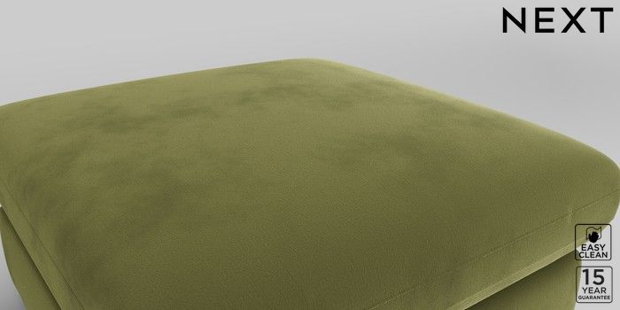 7.2.10 N Premium The Snuggle Grand Footstool Plush Velvet Easy Clean Mid Olive Green Square Angle - Dark | Made Click here to use our website with more accessibility support, for example screen readers