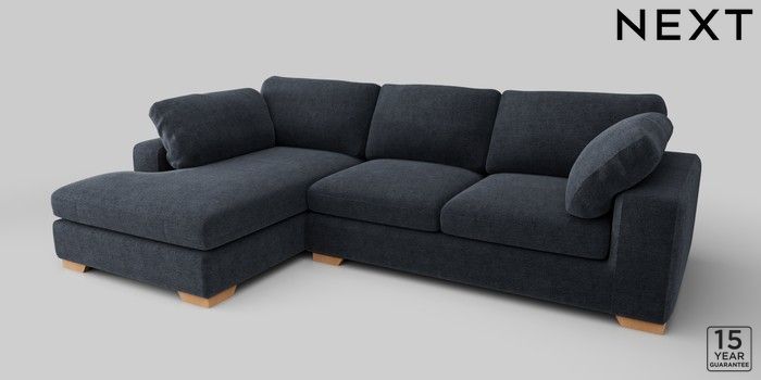 7.2.10 N Premium The Snuggle Grand Large Corner Chaise - Left Hand Boucle Chenille Dark Slate Blue Large Square Angle - Light | Made Click here to use our website with more accessibility support, for example screen readers