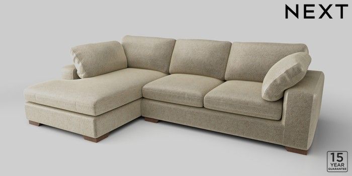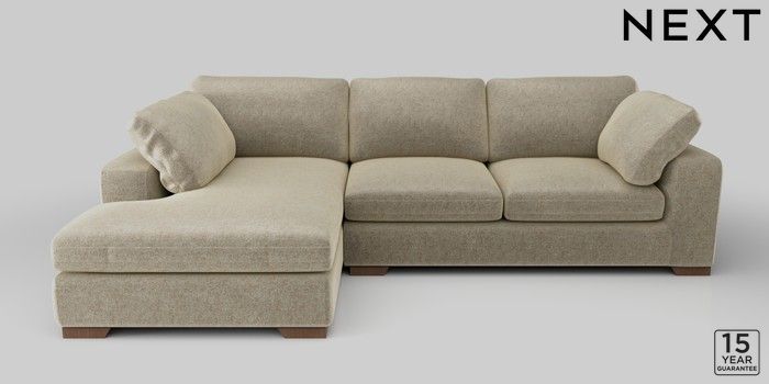 7.2.10 N Premium The Snuggle Grand Large Corner Chaise - Left Hand Plush Chenille Light Natural Large Square Angle - Mid | Made Click here to use our website with more accessibility support, for example screen readers