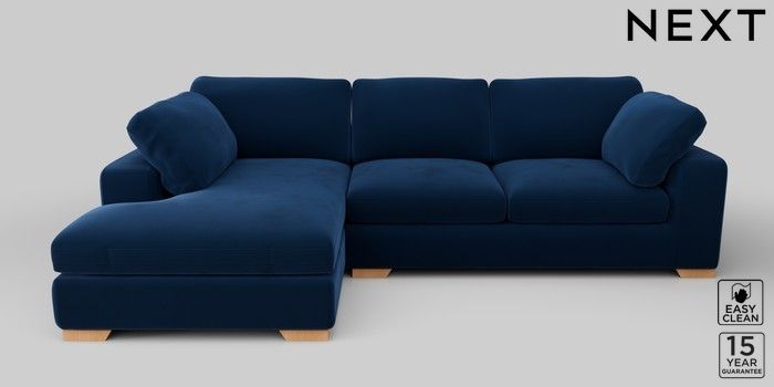 7.2.10 N Premium The Snuggle Grand Large Corner Chaise - Left Hand Plush Velvet Easy Clean Navy Blue Large Square Angle - Light | Made Click here to use our website with more accessibility support, for example screen readers