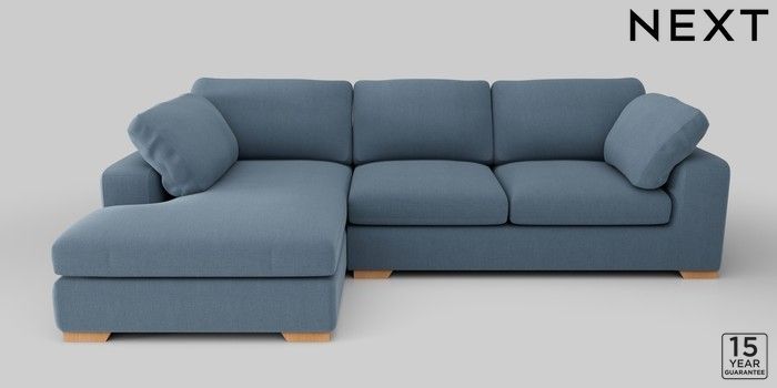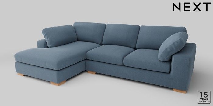 7.2.10 N Premium The Snuggle Grand Large Corner Chaise - Left Hand Relaxed Linen Look Mid Blue Large Square Angle - Light | Made Click here to use our website with more accessibility support, for example screen readers