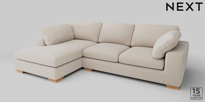 7.2.10 N Premium The Snuggle Grand Large Corner Chaise - Left Hand Studio Chenille Oyster Large Square Angle - Light | Made Click here to use our website with more accessibility support, for example screen readers