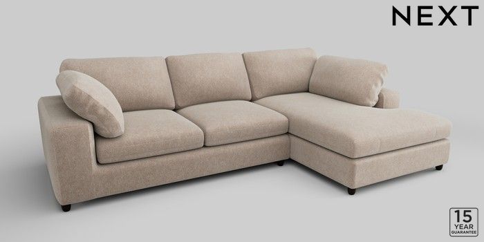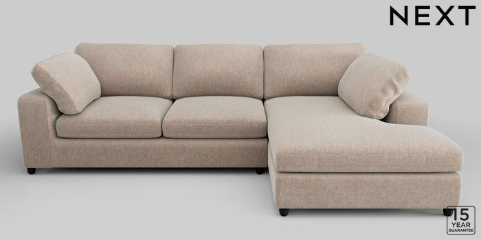 7.2.10 N Premium The Snuggle Grand Large Corner Chaise - Right Hand Cotswold Chenille Light Natural Wooden Glide - Dark | Made Click here to use our website with more accessibility support, for example screen readers
