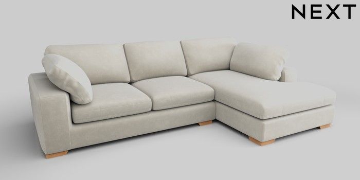 7.2.10 N Premium The Snuggle Grand Large Corner Chaise - Right Hand Luxe Chenille Oyster Large Square Angle - Light | Made Click here to use our website with more accessibility support, for example screen readers