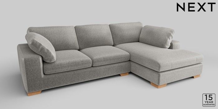 7.2.10 N Premium The Snuggle Grand Large Corner Chaise - Right Hand Plush Chenille Light Grey Large Square Angle - Light | Made Click here to use our website with more accessibility support, for example screen readers