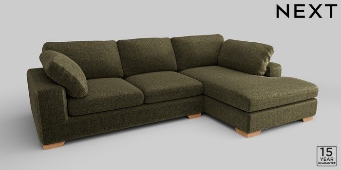 7.2.10 N Premium The Snuggle Grand Large Corner Chaise - Right Hand Plush Chenille Moss Green Large Square Angle - Light | Made Click here to use our website with more accessibility support, for example screen readers