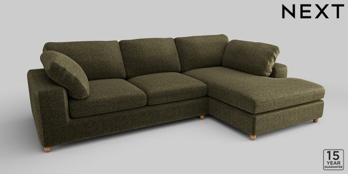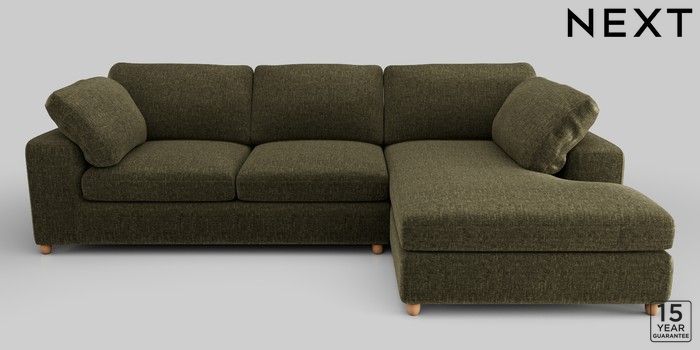 7.2.10 N Premium The Snuggle Grand Large Corner Chaise - Right Hand Plush Chenille Moss Green Wooden Glide - Light | Made Click here to use our website with more accessibility support, for example screen readers