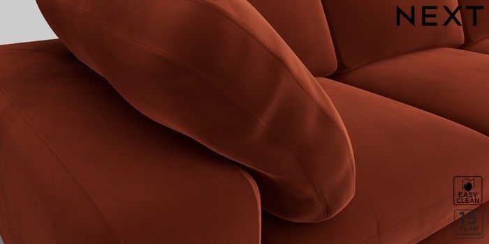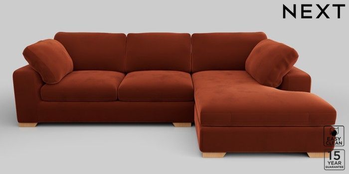 7.2.10 N Premium The Snuggle Grand Large Corner Chaise - Right Hand Plush Velvet Easy Clean Ginger Orange Large Square Angle - Light | Made Click here to use our website with more accessibility support, for example screen readers