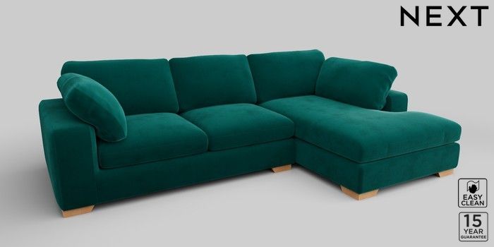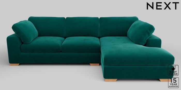 7.2.10 N Premium The Snuggle Grand Large Corner Chaise - Right Hand Plush Velvet Easy Clean Juniper Green Large Square Angle - Light | Made Click here to use our website with more accessibility support, for example screen readers