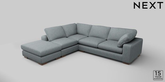 7.2.10 N Premium The Snuggle Grand Large Open End Corner Chaise - Left Hand Chunky Weave Mid Blue Large Square Angle - Mid | Made Click here to use our website with more accessibility support, for example screen readers